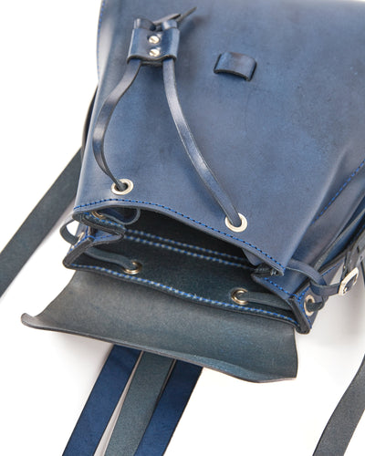 Leather Backpack in Cuoio Blue Mod 130