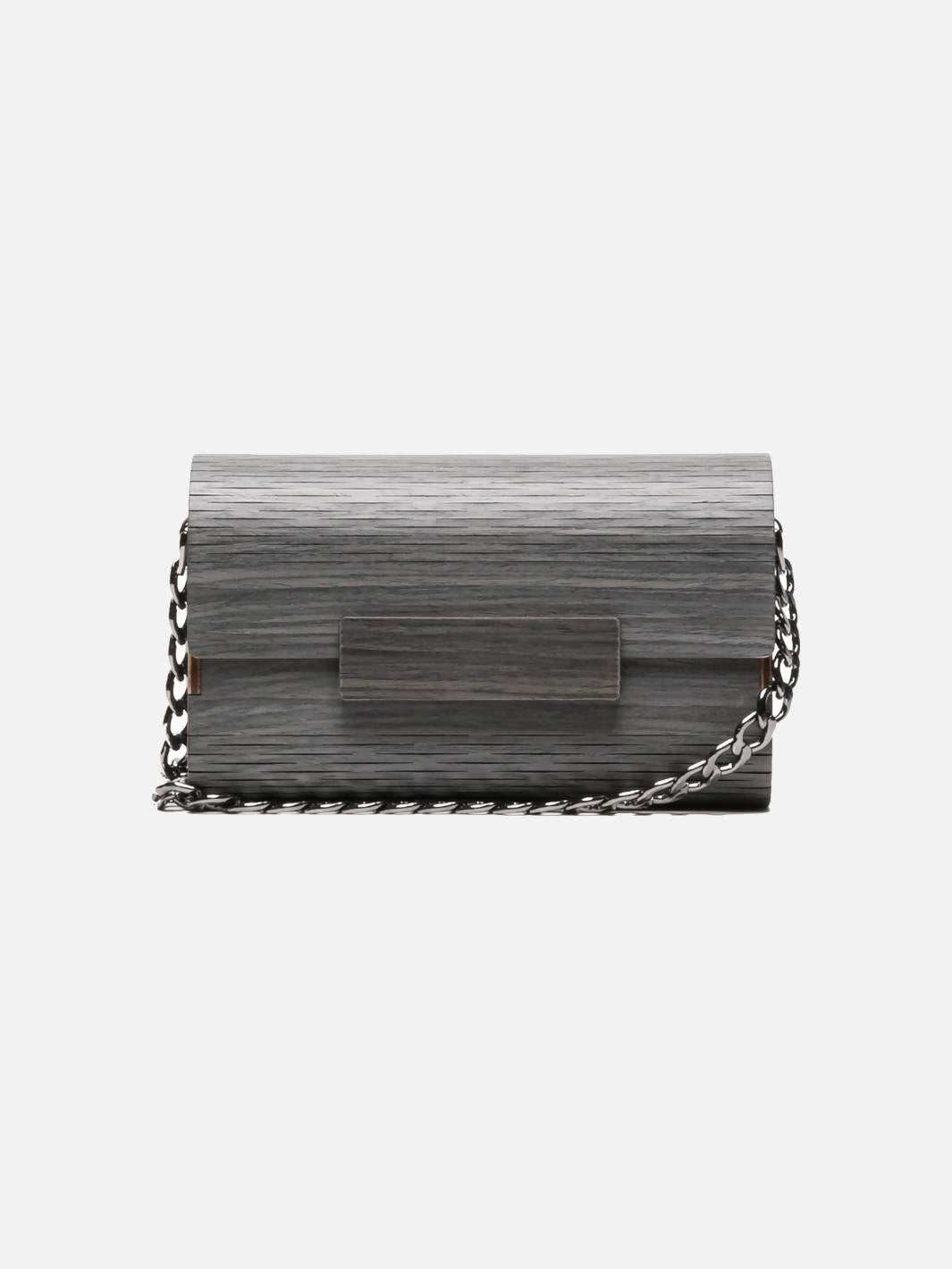 The Wooden DUNNE Bag is in painted Carvalho wood with gray color. It's designed by us and made by a family of artisans with a Certified UPA (Crafter Producer Unity) from Barcelos, Portugal. The father is a carpenter and this new project is from the 2 daughters and the son-in-law.