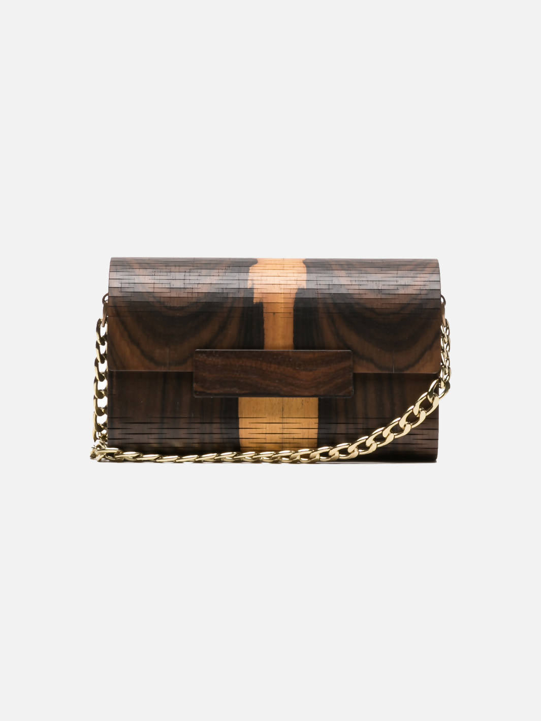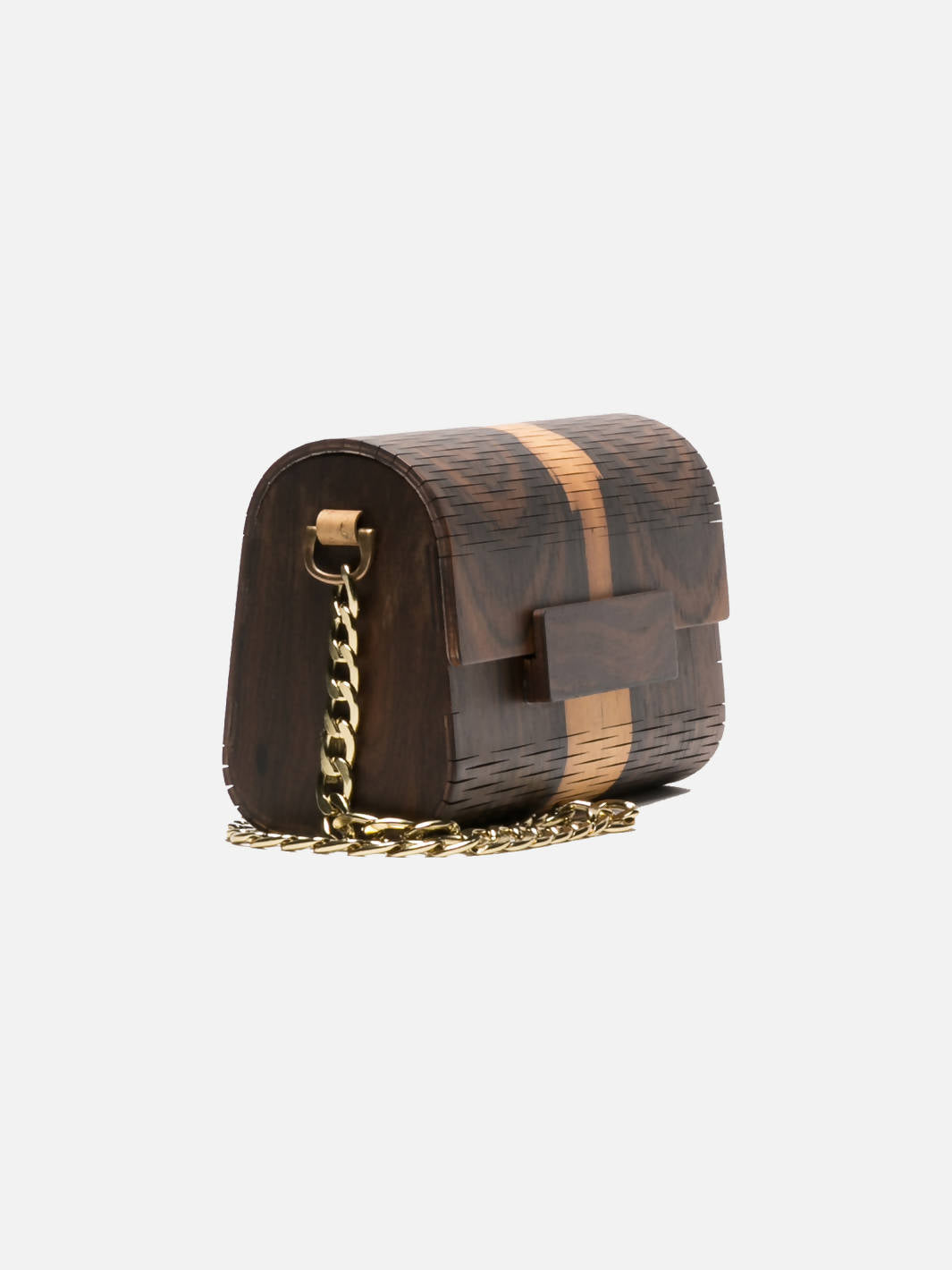 The Wooden MOORE Bag is in Ziricote wood with natural colors of dark brown and camel. It's designed by us and made by a family of artisans with a Certified UPA (Crafter Producer Unity) from Barcelos, Portugal. The father is a carpenter and this new project is from the 2 daughters and the son-in-law.