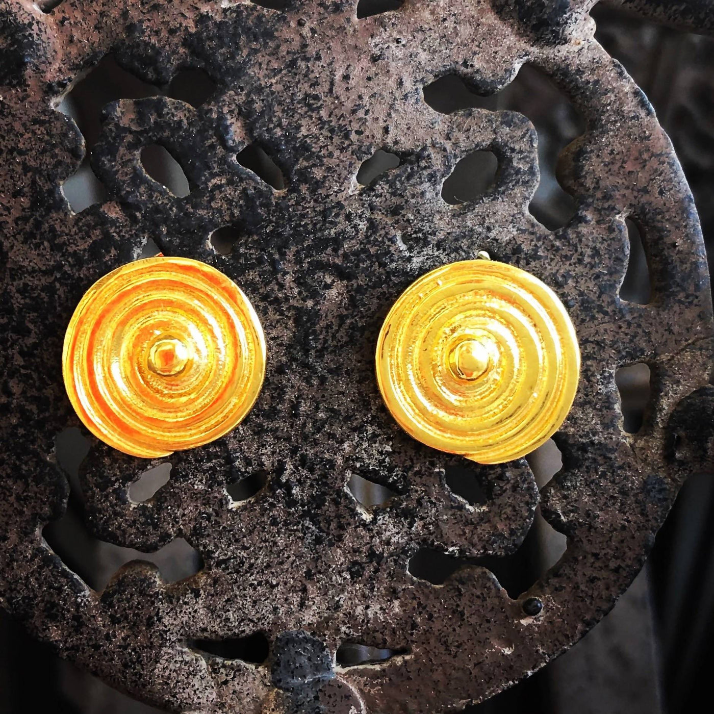 Signées Elena Jewelry Concepts, ces boucles d'oreilles de créateur en argent sterling 925 plaquées or 24k en forme de spirale sont faites main en Grèce.